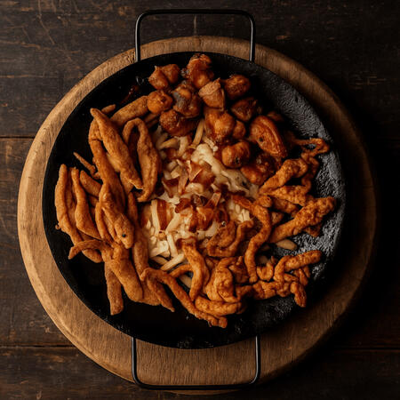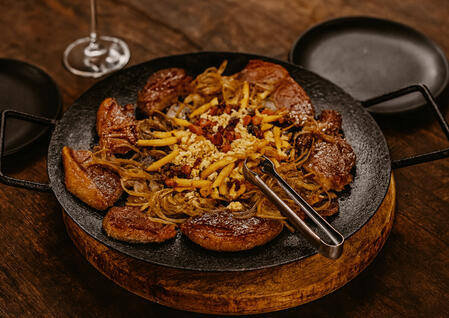 Acompanham arroz, batatas e salada, com carnes grelhadas e porções fritas no arado e nossa parmegiana com molho italiano.